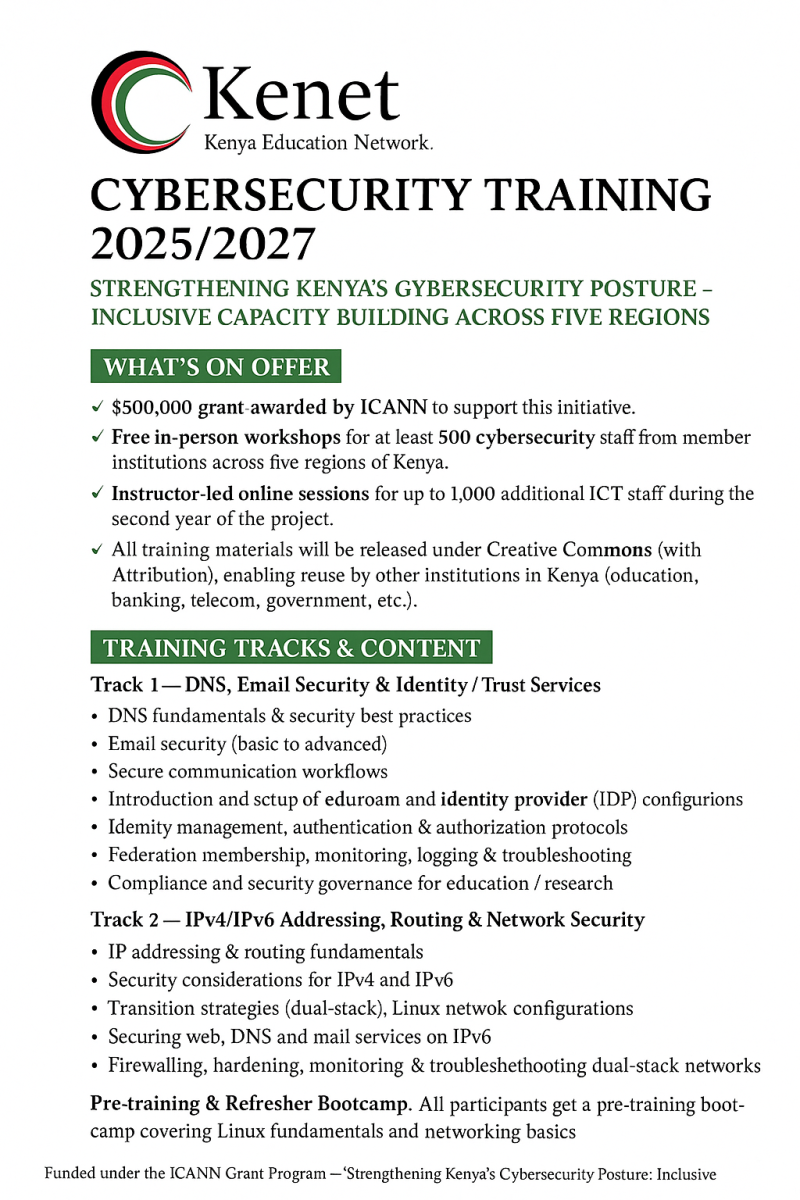 KENET has been awarded the Building Opportunities/Leveraging Technologies (BOLT) grant worth $200,000 by the Internet Society Foundation. The BOLT Grant Program is designed to support teams of innovators, technologists and researchers in relevant non-profit organizations working to expand the possibility of Internet connectivity and access globally (see BOLT Grant Website for further details). This is done through the development of prototypes and pilots that will bring into reality...